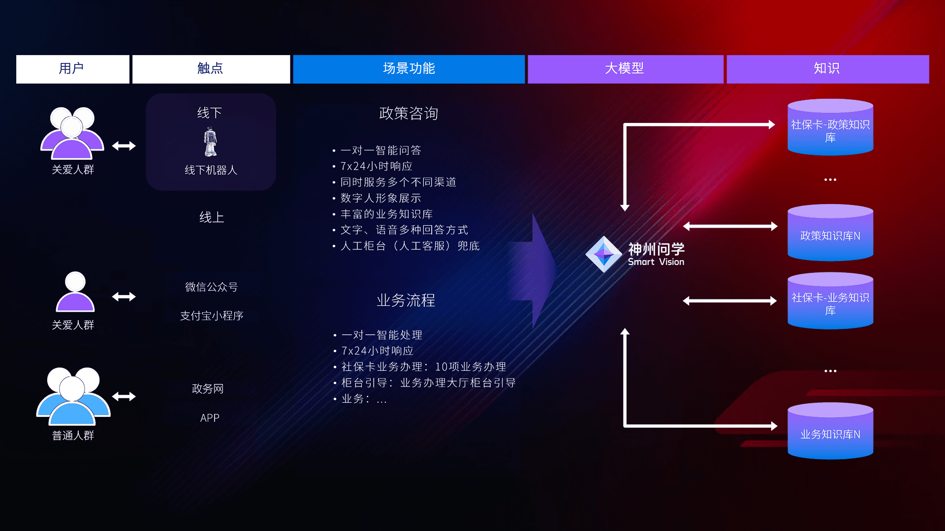 • 线上线下全覆盖:线上提供微信公众号、、支付宝小程序、、政务网、、app多种渠道,,,,与线下机器人形成完整服务体系。。。